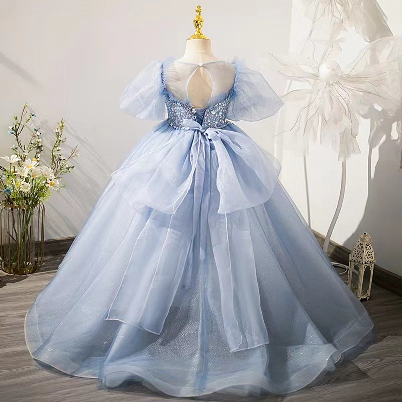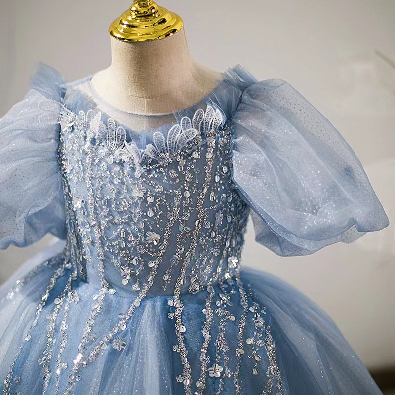 Gray-blue princess dress for girls aged 6-9-153